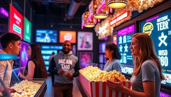 Description:A popcorn bar that offers a variety of flavored popcorn made using innovative technologies. Customers can choose from options like augmented reality popcorn, edible glitter popcorn, or even customizable popcorn flavors using an interactive touchscreen. The experience combines snacking with tech entertainment.